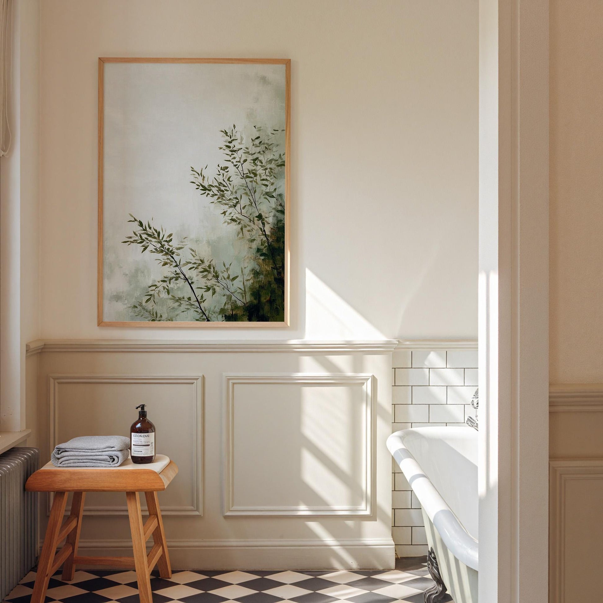What makes this botanical piece distinctive is its gentle atmospheric quality the soft painterly treatment and asymmetrical placement create peaceful contemplative mood whilst the minimal approach allows detailed observation of natural forms perfect for serene interiors.