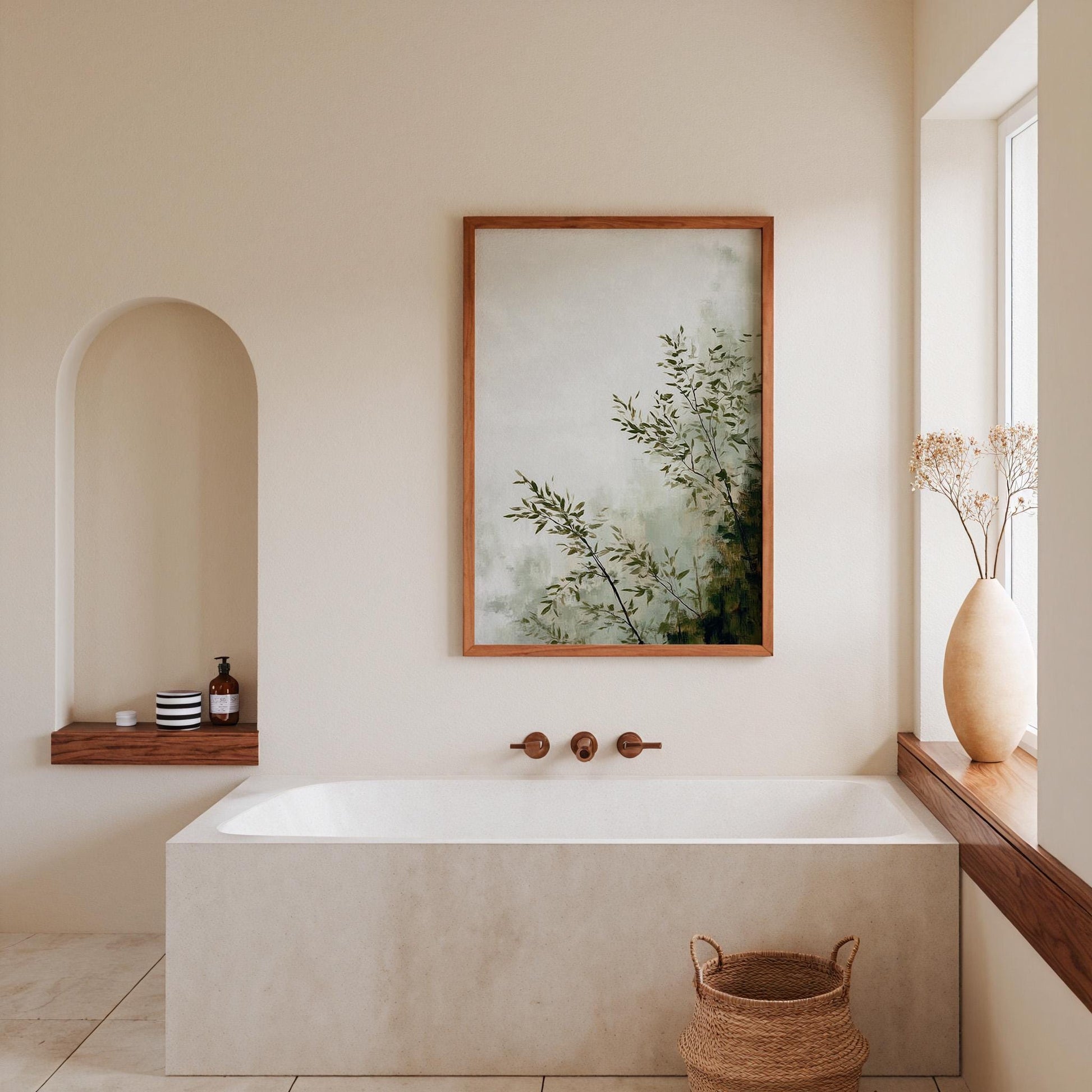 IDEAL PLACEMENT Bedrooms: Calm botanical presence for restful spaces Studies: Contemplative nature study for work environments Hallways: Elegant organic beauty for transitional areas Dining Areas: Sophisticated natural backdrop for gatherings