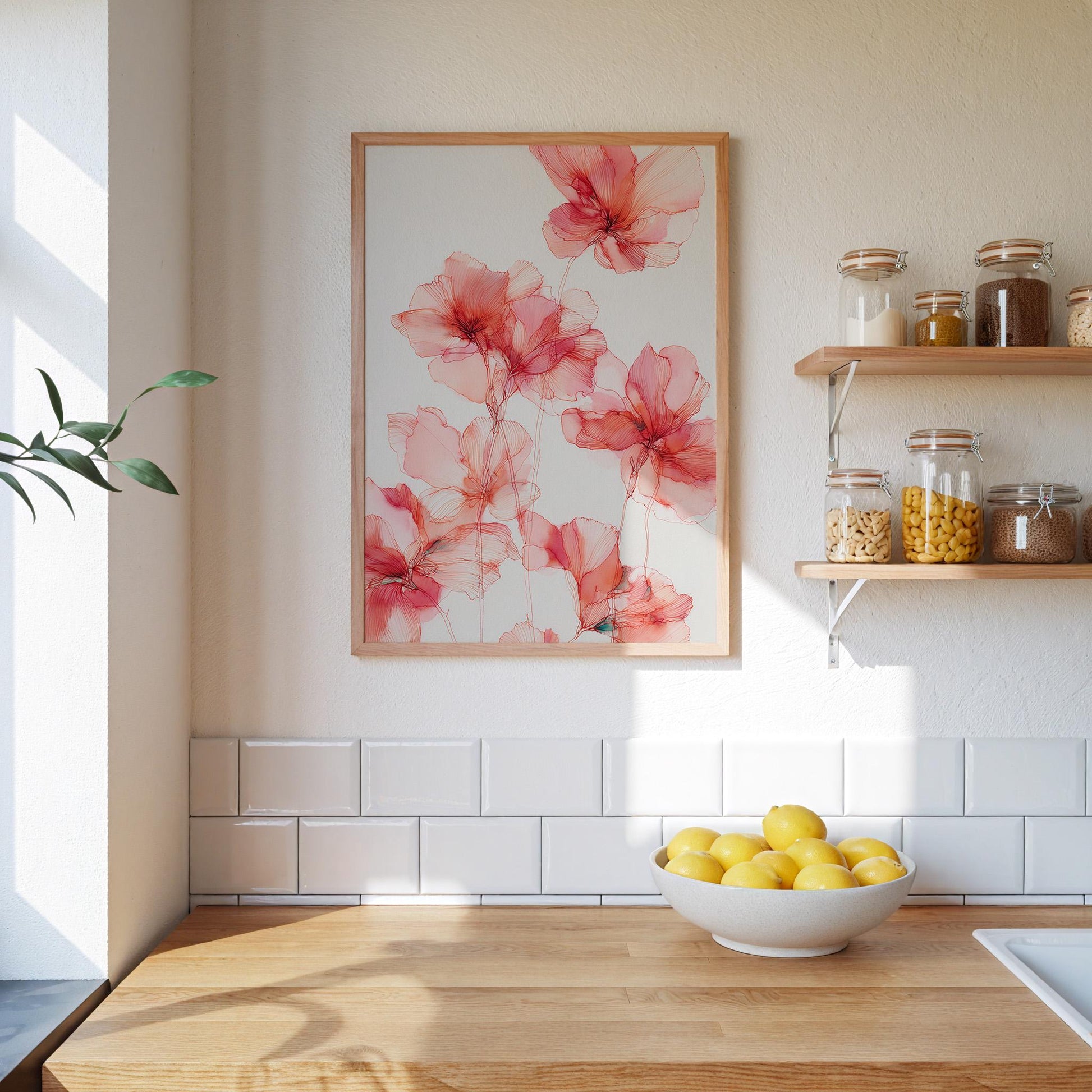 What makes this pink botanical art special is its clean line drawing style that works beautifully in both traditional and modern spaces while the rich pink ink creates warmth and visual interest. The botanical line art print brings a calming natural presence to any room while the minimalist design ensures it complements rather than overwhelms your existing decor.