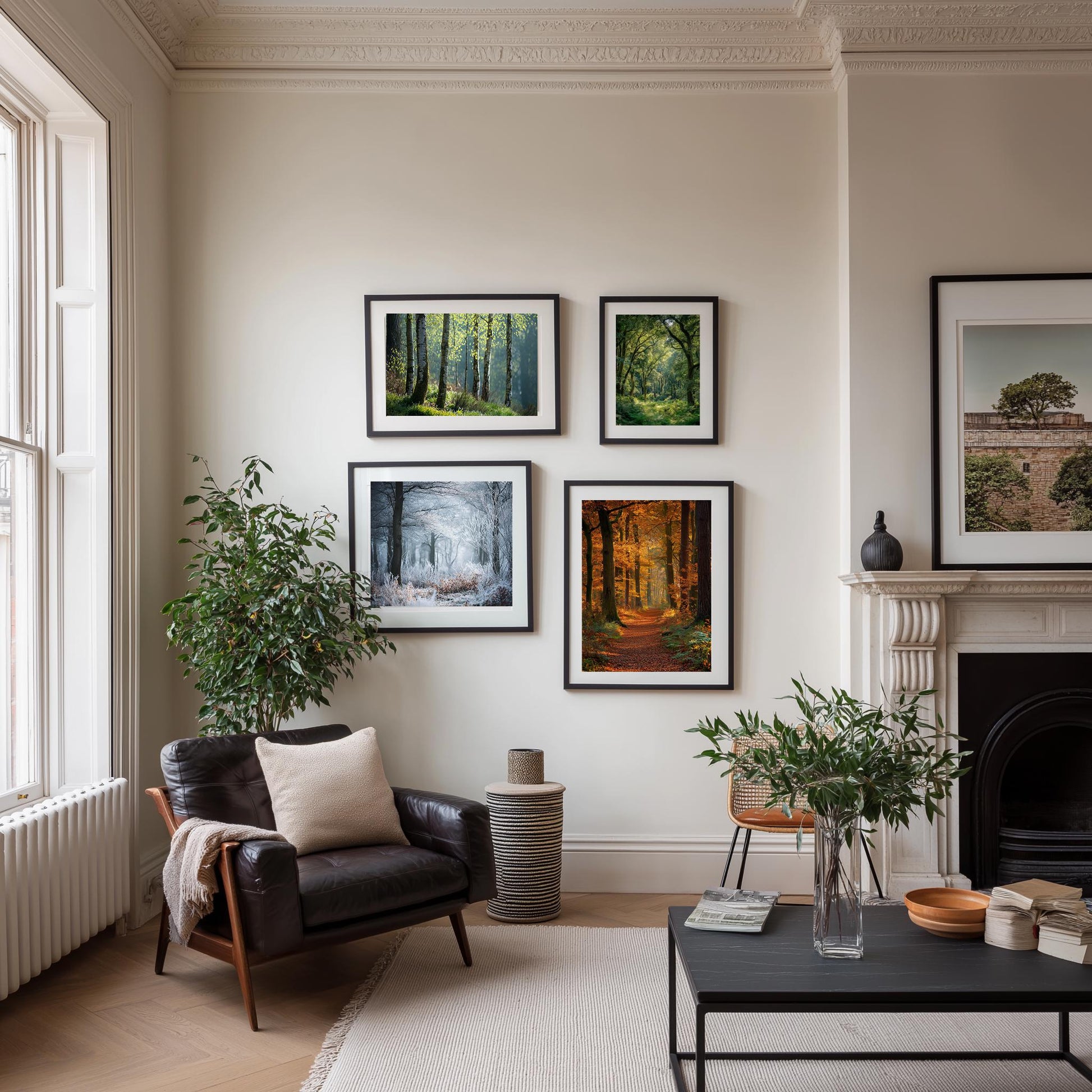 Step into the changing heart of the English countryside with this collection of fine art woodland photography prints, each capturing a real ancient English forest through the four seasons: Spring, Summer, Autumn, and Winter. These atmospheric images invite you into peaceful natural paths, shaded canopies, and frost-covered trails — evoking the quiet magic of Britain's native woodlands.