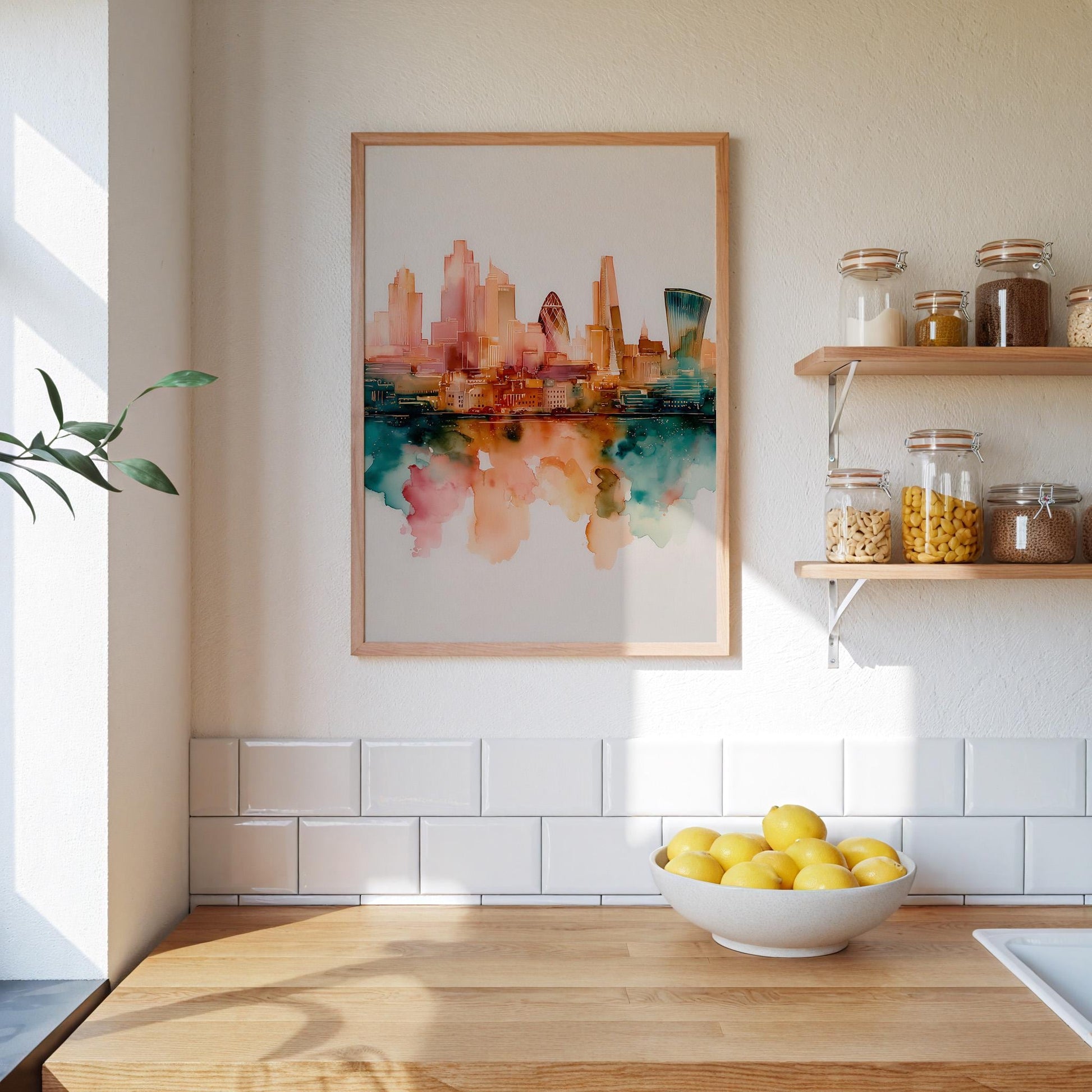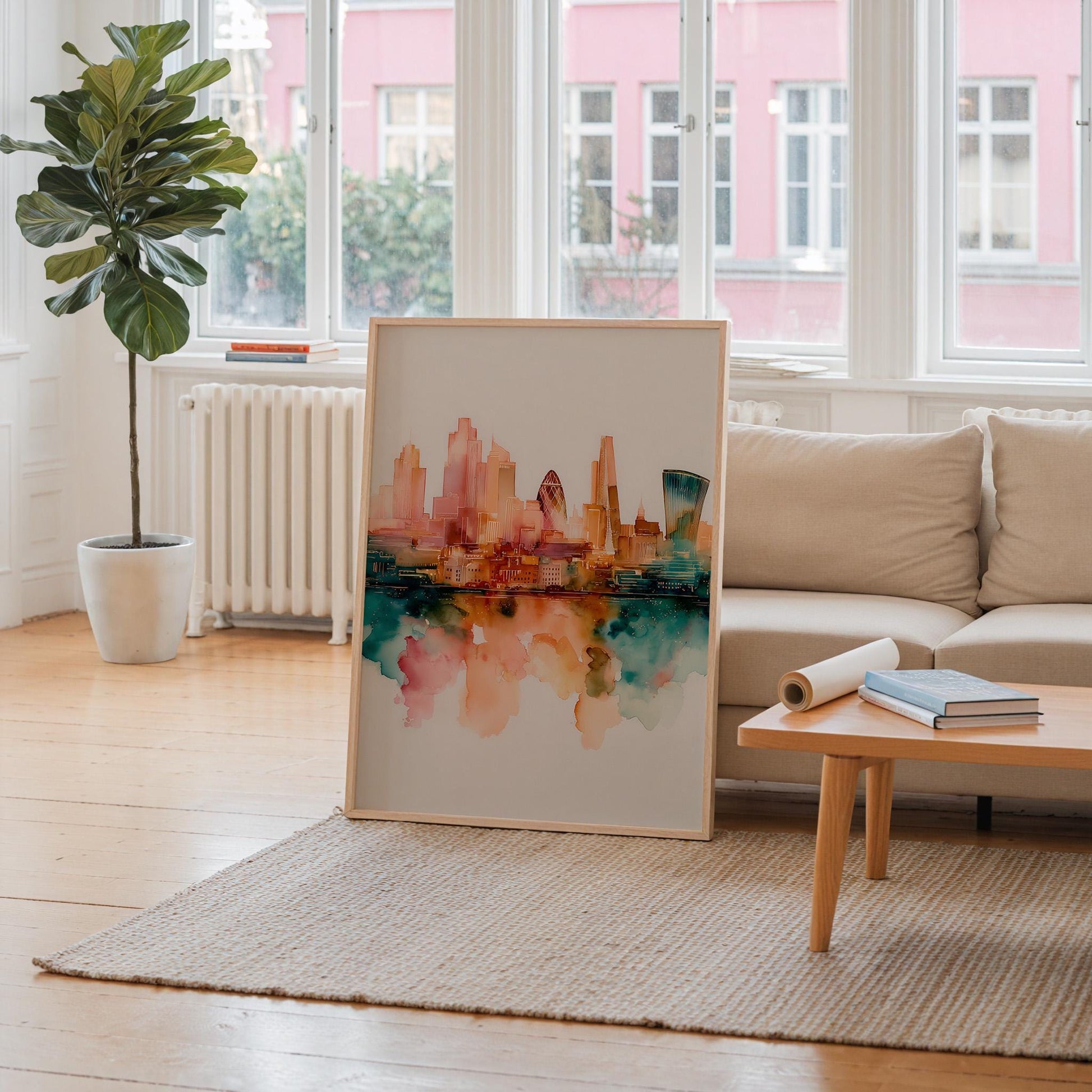 London Cityscape Watercolour Print: Modern British Skyline Art, Urban Architecture Wall Decor, Urban Design