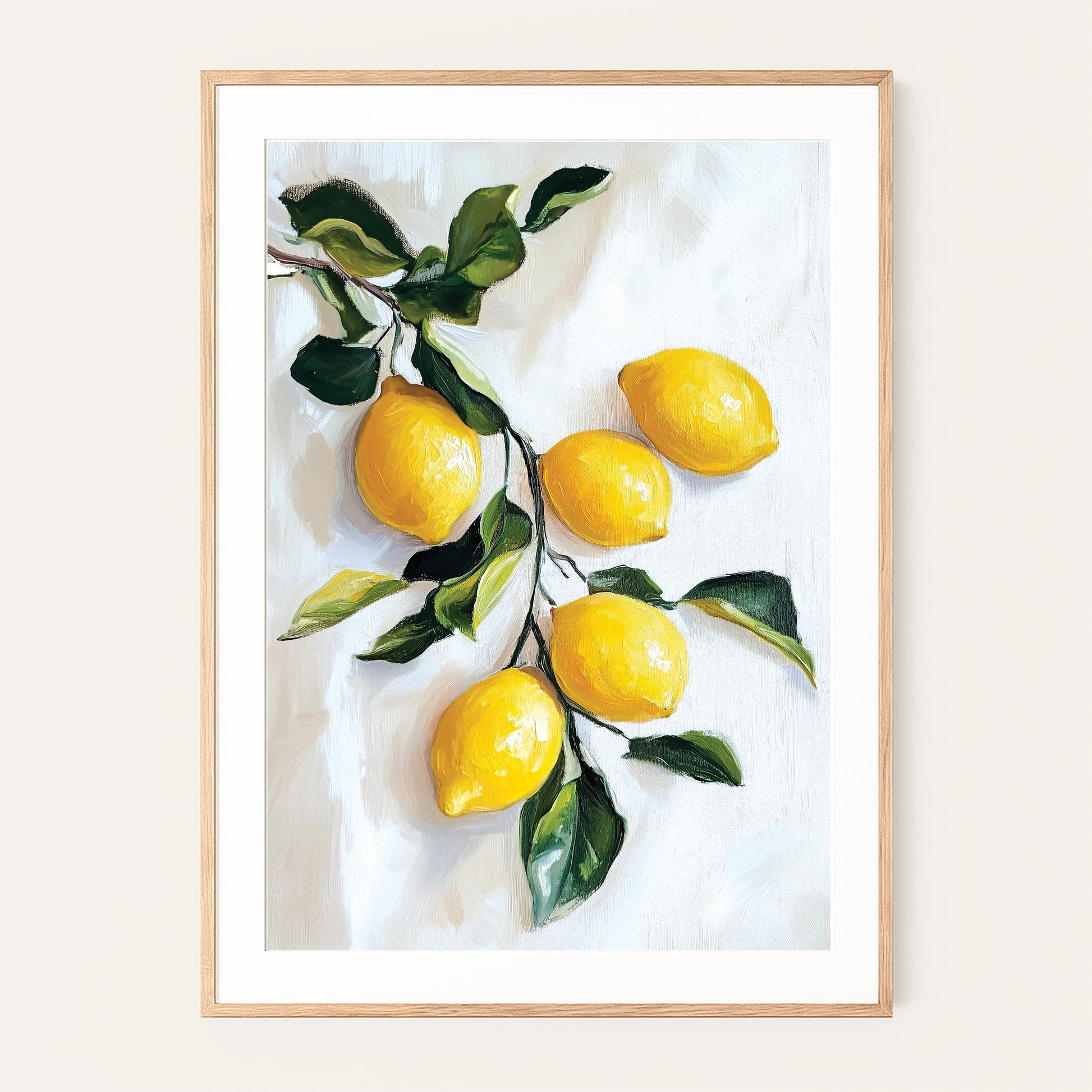 Bring a splash of sunshine into your home with this vibrant Lemon Branch Still Life Art Print – a timeless piece perfect for kitchens, dining areas, or anywhere you want a fresh, Mediterranean-inspired touch. Featuring hand-painted ripe yellow lemons on a delicate branch with lush green leaves, this botanical fruit illustration is both classic and contemporary.