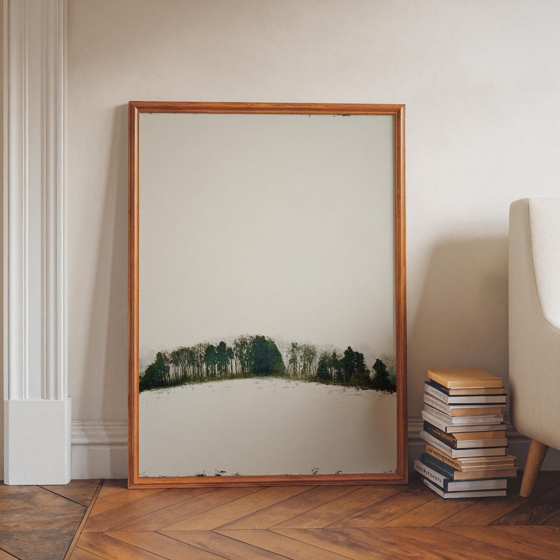 Minimalist Winter Treeline Print - Nordic Forest Landscape Art Scandinavian Woodland Wall Decor Negative Space Snow